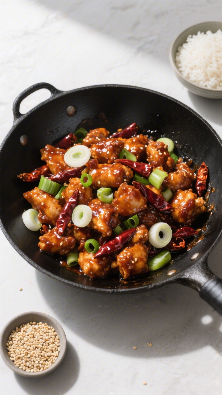 This version focuses on crispy chicken that actually stays crisp once sauced, thanks to a cornstarch-and-egg coating. The sauce is balanced and glossy—not too sweet, not too sour—featuring soy, rice vinegar, garlic, ginger, and a hint of heat.