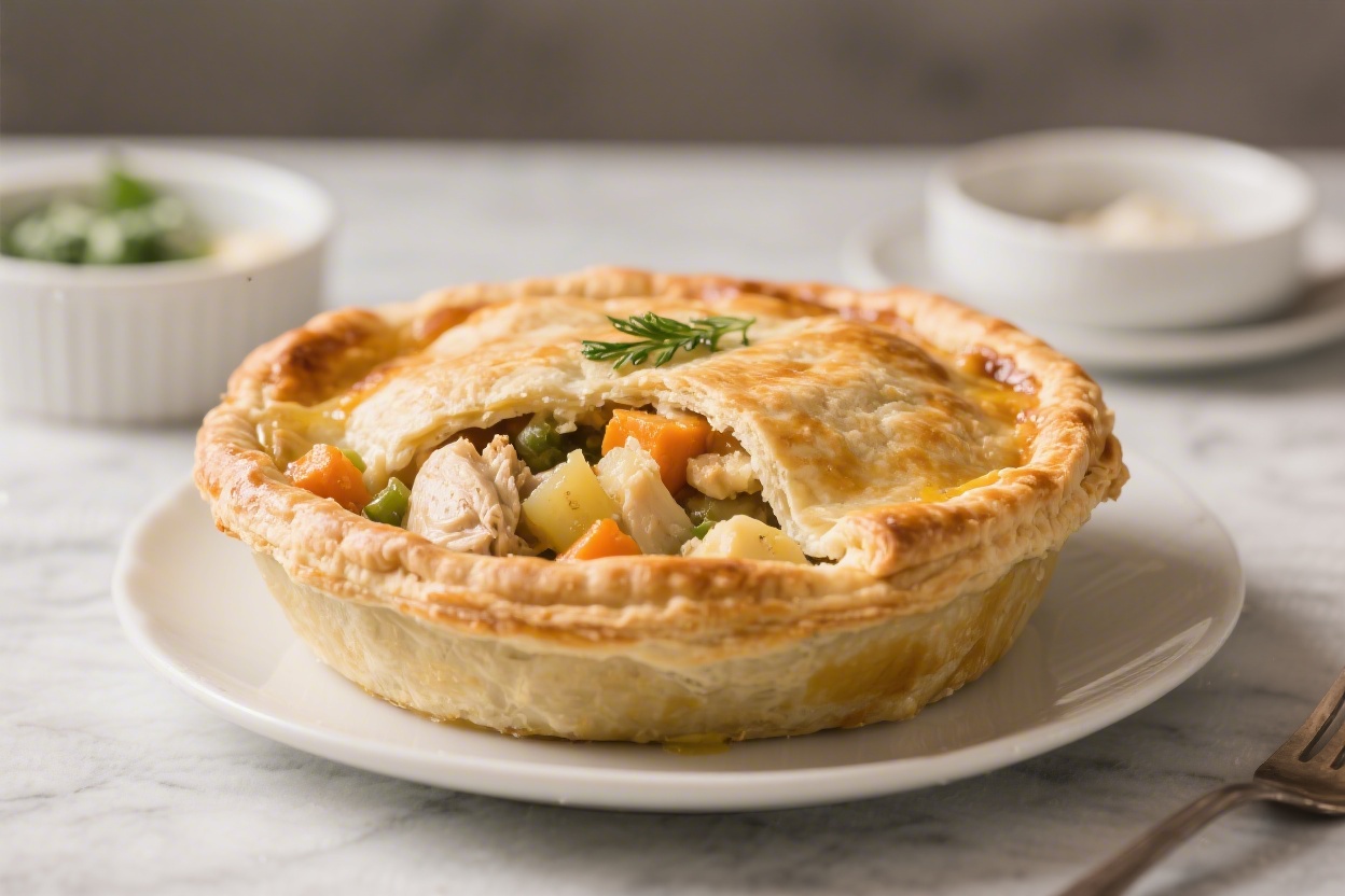 - Rest before serving. Let the potpie rest 10–15 minutes to set. This keeps slices neat and prevents the filling from spilling out.